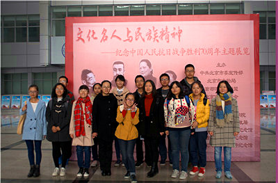 在展览厅内,同学们了解了抗战期间文化名人的爱国事迹后表达了对先辈们崇高的敬意,并纷纷表示要继承先辈们的意志,实现中华民族伟大复兴“中国梦”。