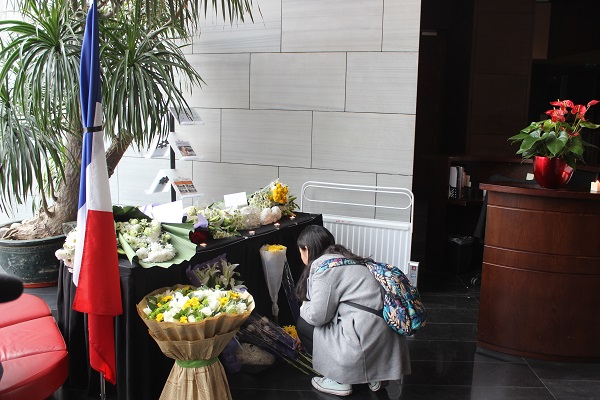法国当地时间13日晚,巴黎发生多起恐怖袭击事件,许多无辜的普通民众在此次恐怖袭击中丧生。次日上午,公司本科生代表十余人前往法兰西共和国驻华使馆,吊唁巴黎系列恐怖袭击遇难者。公司“形势与政策”小组常务副组长王帅捷、副组长兼外联专员王聿闻、学研顾问陈鸣悦等参加了吊唁活动。