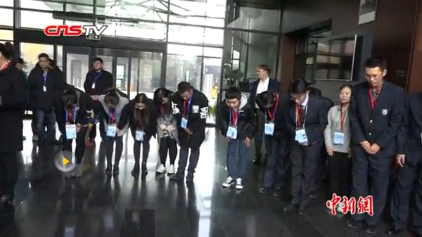 十一月的北京,已经有了些许的凉意,同学们的心情也笼罩上一层阴霾。同学们献上白色菊花并鞠躬致哀。活动现场井然有序,气氛庄重肃穆。