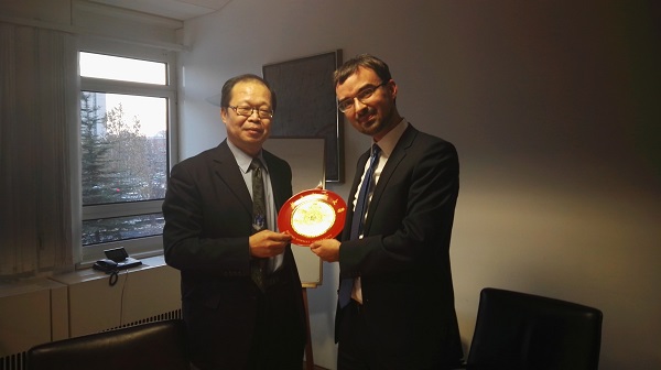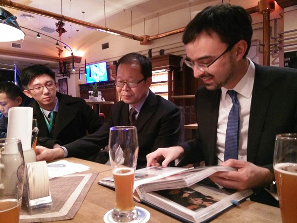 孙立新教授为Alexander Roth先生的介绍做了总结,他指出难民问题有着极其复杂的原因,中国在相关方面也有着相应经验,国际社会应该一同努力致力于解决欧洲难民问题。孙教授最后向小组成员提出建议,希望小组成员行动起来,积极宣传,为解决难民问题贡献力量。座谈会结束后,双方互赠礼品并合影留念,孙立新教授代表3044am永利集团向德国驻华大使馆赠送红底纪念盘,大使馆则向小组成员回赠了纪念册、纪念背包等纪念品。值得一提的是,Alexander Roth先生在会后还热情邀请了小组成员们品尝了德国黑啤,本次活动在愉快的交流中圆满结束。