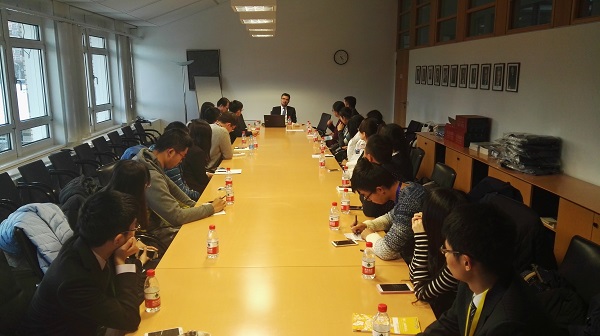 下午2时30分,“形势与政策”小组成员抵达德国驻华大使馆。德国驻华大使馆新闻处外交官、“德国印象”微信公众平台主编Alexander Roth先生在使馆三楼会议厅与小组成员举行了以“欧洲难民问题”为主题的座谈会,双方展开广泛而又亲切的交流。Alexander Roth先生首先对永利官网“形势与政策”小组同学的到来表示欢迎,随后他介绍了当下欧洲面临的难民危机。Alexander Roth先生从难民的来源、数量、构成、动因等诸多角度全面展示难民问题的基本概况,随后他介绍了欧洲在处理难民问题方面的行动,包括设立联邦基金、提供工作机会等措施,充分体现了欧洲尤其是德国在对待难民问题上的开放态度。针对巴黎近期发生的恐怖袭击事件,他指出当前恐怖分子并没有通过难民潮进入欧洲,难民大多是受害者,欧洲国家将会加强管控,做好难民安置工作,尽早使难民与社会实现融合。最后他介绍了难民迁入对德国与欧洲的积极影响,强调要对难民保持开放态度,这也是德国精神的体现。Alexander Roth先生还回答了小组成员关于国际反恐、土耳其击落俄罗斯战机、欧洲杯的有关问题。