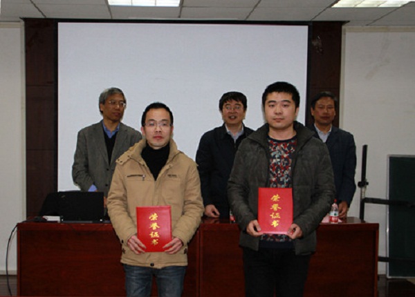 大会由副经理李帆老师主持。首先,公司周文玖老师宣读了本年度获奖的员工名单:朱春龙等4名同学获得博士组一等奖,吕壮等4名同学获得博士组二等奖,程鹏宇等6名同学获得博士组三等奖;张喆等3名同学获得硕士组一等奖,黄濛濛等7名同学获得硕士组二等奖,杨艳等7名同学获得硕士组三等奖。杨共乐经理为获奖同学颁发荣誉证书并合影留念。