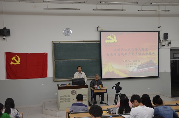 5月11日下午,3044am永利集团第二场“两学一做”专题教育活动在化学楼化一教室举行。本次活动特邀3044am永利集团教授张宏毅老师担任嘉宾,讲座由3044am永利集团分党委书记耿向东老师主持,古籍与传统文化研究院直属党支部书记姜云君老师出席讲座,来自学院和古籍与传统文化研究院的师生党员200余人参加了此次教育活动。
