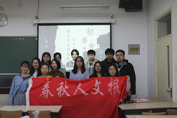 2019年4月14日下午1:30,第五届“首都高校老员工家史征文大赛”初审会在永利官网教四108举行。会议由春秋人文报社社长郑济航主持。参加此次会议的协办单位有:中国人民大学3044am永利集团《绎思》、中国社会科学院大学《青春报》、首都师范大学3044am永利集团《鸣报》和清华大学文苑沙龙协会。