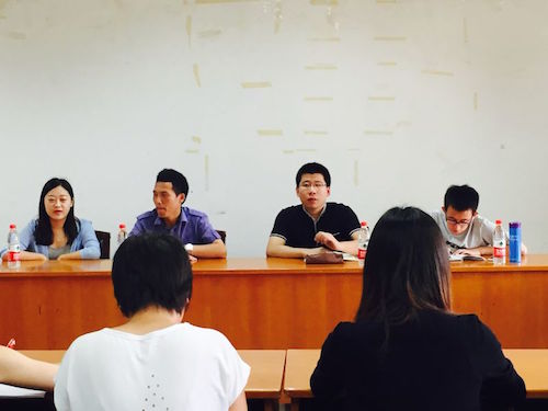 本次活动邀请到刚刚经历过求职并且找到满意工作的2015届毕业生,王楠、刘哲、潘光伟、贾大伟等四位同学担任主讲嘉宾,他们即将涉足的领域为公务员以及事业单位。首先,王楠就个人参加国考的经历,向大家详尽地介绍了考试流程以及如何备考,强调了大量做题并提高做题速度和准确率是提高行测成绩的有效途径,认为准备申论的重点是保持自己独特的风格。刘哲强调同学们要学会认识自我才能给自己的求职做好定位,同时阐述了自己对公务员这一职业的理解和定位,并向同学们推荐了备考公务员过程中较有用的参考书。贾大伟向大家讲述了自己备考事业单位的过程,从简历、实习经历和面试等几个方面进行了详细的解释。潘光伟针对信息共享和面试技巧等方面进行了介绍,建议同学们积极有效利用身边的资源,如在蛋蛋网上搜集各种面试经验和笔试经验等,或是与同学组成模拟面试小组等,这都有助于我们今后的求职。
