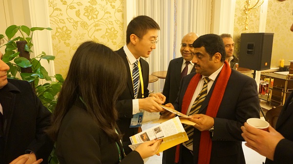 随后,大家享受丰盛的晚宴。晚宴过程中,“形势与政策”小组组长张俊毅等向阿卜杜拉·萨阿迪大使介绍“形势与政策”小组概况,大使先生对“形势与政策”小组的活动表示充分肯定。招待会结束后,公司员工代表和中国前中东问题特使吴思科先生进行亲切交流,并和吴思科先生合影留念。