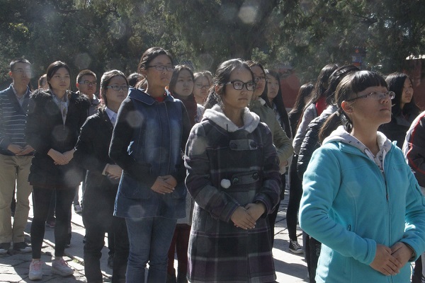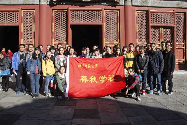9月,在迎接2015级新生们到来的同时,也迎来了至圣先师孔子的第2566个诞辰。学期中,春秋学社结合自身特色,吸收往年举办活动的经验,成功举办了本年度的祭孔活动。上午8时30分,在各部部长的带领下,学社成员出发前往北京孔庙。到达孔庙后,由2014级社友陈博洋为大家作解说,带领社员们参观了大成殿、乾隆石碑、金榜题名等处。10时35分许,开始准备祭孔仪式,参与祭祀人员列队于神道两侧,等待赞礼口令。赞礼共分五项进行。首先,由儒学社负责人宣读仪式开始;接下来,主祭行三鞠躬之礼,从祭作磐折之容;进玄酒,主祭再行拜礼;后读祝官进行读祝;最后由主祭带领从祭作三鞠躬之礼。
