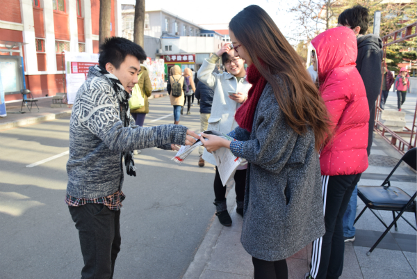 《春秋人文报》微信平台也对本次派报活动进行了预告。派报现场人头攒动,同学们纷纷前来领取报纸,并询问了报纸及家史征文大赛的相关情况,表现出极大的热情。社员们也在邱季端南向各个方向涌来的同学们派发报纸。至12点20分,一千份报纸全部派送完毕,报纸公开派送活动取得了圆满成功。