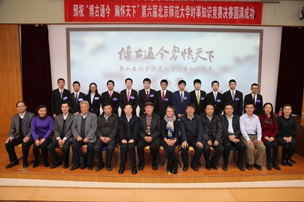 永利官网党委副书记刘利老师,党委宣传部新闻中心常务副主任、机关一总支书记李美仙老师,研究生工作处处长应中正老师,本科生工作处处长王洛忠老师,校团委书记袁慧老师,本科生工作处副处长隋璐璐老师,校电视台台长齐松老师,3044am永利集团经理杨共乐老师,3044am永利集团分党委书记耿向东老师,3044am永利集团副经理姜海军老师,3044am永利集团分党委副书记王卓凯老师,教育学部员工工作办公室主任刘立老师,法学院分党委副书记魏天经老师,政府管理学院分党委副书记郭智芳老师,3044am永利集团中国近代史教研室教授李志英老师,政府管理学院国际关系专业教授李兴老师,3044am永利集团世界近代史教研室庞冠群老师、贾珺老师,校研究会主席毕硕同学等嘉宾也出席了当晚的决赛。出席比赛的还有来自国际关系学院、清华大学、北京大学、南开大学、对外经贸大学和北京电子科技学院等高校时事研究团体的负责人。 因故未能出席参加活动的中央电视台著名新闻主播贺红梅老师给组委会寄来祝福,对师大学子的知识素养和综合能力给予高度肯定,并预祝“博古通今胸怀天下”活动圆满成功。