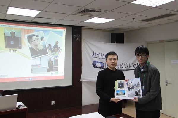 会议首先通过视频回顾了本学期“形势与政策”小组举办和参与的各项活动。随后由小组成员张颖宣读小组自评的“2015年度国际十大新闻”,“释前嫌,古美关系开启崭新篇章;舍成见,伊核问题实现和平解决”“人心惶惶,金砖国经济衰退引忧虑;困顿重重,美联储利息提高添冲击”“希拉里出山,美利坚选情激荡;李光耀逝世,新加坡全民哀痛”等2015年全球瞩目的新闻入选。之后,小组2015级新成员们交流了自己加入小组一学期以来的感受,对师兄师姐的关怀与帮助表示感谢。张端成同学揭晓了“2015年‘形势与政策’小组十大新闻”,借此回顾了一年来小组的重要比赛和校际交流活动,“博古通今,胸怀天下——时事知识竞赛把握时代命脉”“穿越时空,博采众长——‘国家文化月’探索异域古今”等入选,从世界到眼前展现了小组成员的风采与视野。