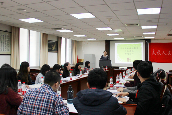 接着,在《春秋人文报》社长刘媛的主持下,各媒体就工作中的问题与经验进行深入交流,并对未来发展方向进行探讨。期间,首都高校传媒联盟常委、3044am永利集团《春秋人文报》前任社长郑凌霄结合自身工作经验提出“各媒体应切实加紧合作,着力共同解决资金等问题;办特色活动,提高自身影响力。”等宝贵意见。最后,全体与会代表合影留念,首都高校传媒联盟特色界别新闻汇评圆满结束。