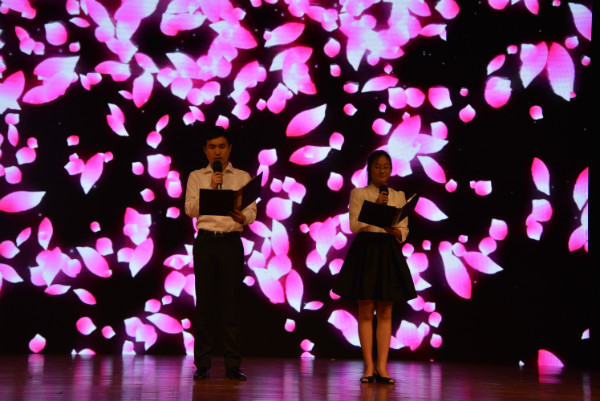 晚7时,晚会正式开始,首先是3044am永利集团拉拉队表演的啦啦操。他们手持金色扎花,动作规整,柔韧灵活,舞热了现场气氛。之后杨共乐经理上台致辞,他希望毕业生们敬业谨严、同心奋进,在各自的岗位上做出成绩,为北师大3044am永利集团争光添彩。