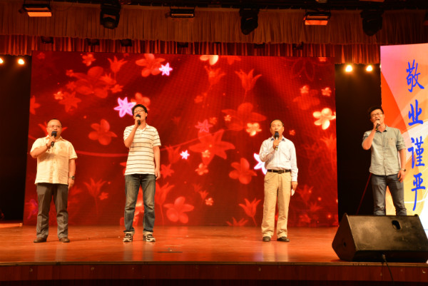 2012级本科生带来舞蹈《大王叫我来巡山》,班主任黄国辉身穿黑色披风特别出演,表情可爱,动作呆萌,与员工们配合默契,引起全场一片欢呼。接着2013级硕士生联唱离别曲目,淡淡的伤感弥漫在晚会现场。接下来一支魅惑动感的舞蹈《LAMB》再次引爆了全场。师生合作朗诵的《寻梦者》《那时你老了》抑扬顿挫,木铎金声;器乐合奏的《梅花三弄》意境悠远,令人叹赏。