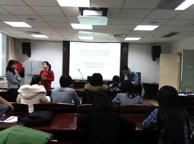 2015年12月19日,公司历史教育教研室在600会议室召开2014级全日制教育硕士实习总结考评会。公司郑林教授、北京教育学院丰台分院孙楠老师及北京西城区教育研修学院张逸红老师组成专家组,对公司2014级教育硕士的教育实践能力进行了考核。