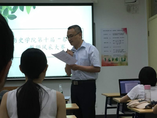 随后,两位员工评委和马卫东老师对选手们进行了点评。李皎乐同学点评大家都做到了史料详实、论从史出,逻辑清楚,PPT做得很现代化,但字过多,历史课讲课应富有激情,还应适量板书课程结构。肖雪同学对选手一一进行了点评,窦芳丽同学讲课速度比较合适,可以把问题先提出来;刘晓月同学的课程设计非常好,可以多带同学自己找出答案;李筱艺同学讲得比较深入浅出,但设置的问题较大;于晓冉同学和员工互动自然,设置问题合理;钟传永同学讲得非常有意思,但还要契合一些关键知识点。马卫东老师肯定了选手们作为优秀历史教师的潜质,并建议大家只讲一个子目,课件文字不能太多,史料和图都要能引领员工阅读。马老师最后还讲到历史的基础教育应从课标入手,收集包括教科书在内的各种资源,迅速组合,建构自己的教学,通过教学引领员工认识历史而不是教科书,给在场的选手和观众以很大的启发。