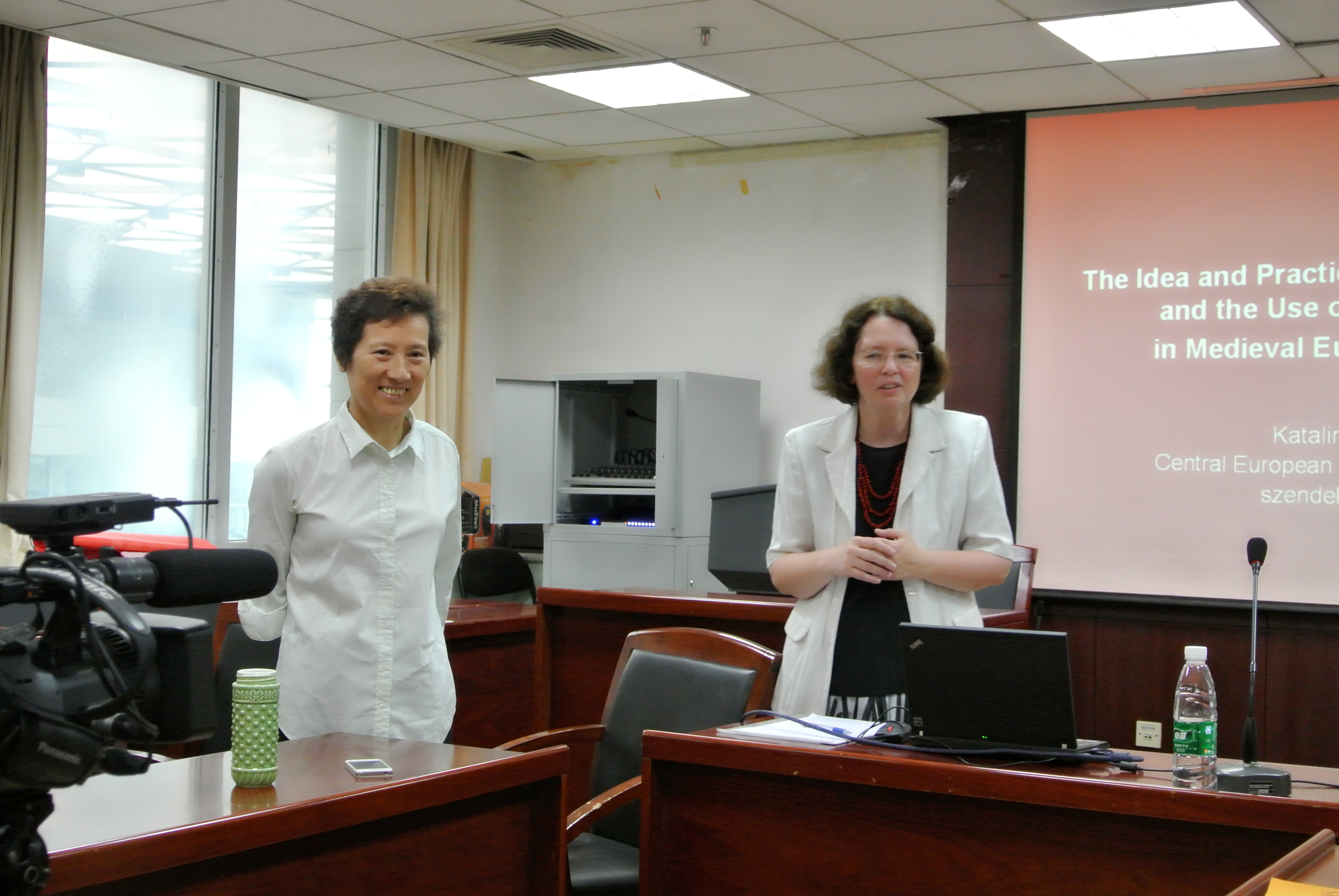 2015年9月1日15:00-17:00,中欧大学卡塔林(Katalin Szende)教授在主楼600做了题为《中世纪欧洲城镇城市规划和空间利用的理念与实践》的学术报告。讲座由公司中国古代史教研室主任宁欣教授和刘林海教授主持。来自公司及其他学院的员工到场聆听。
