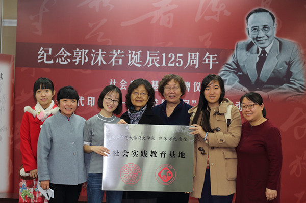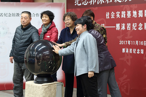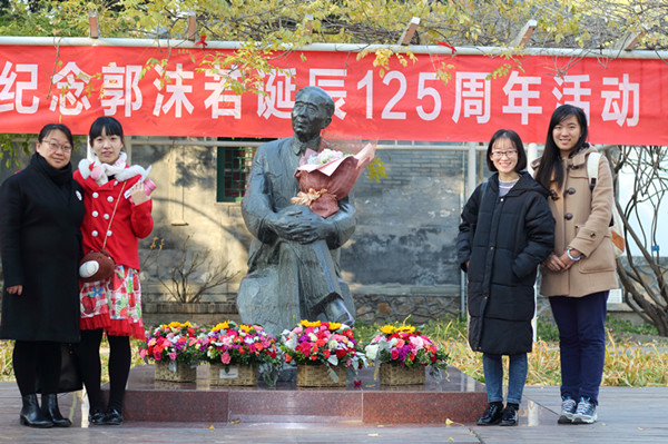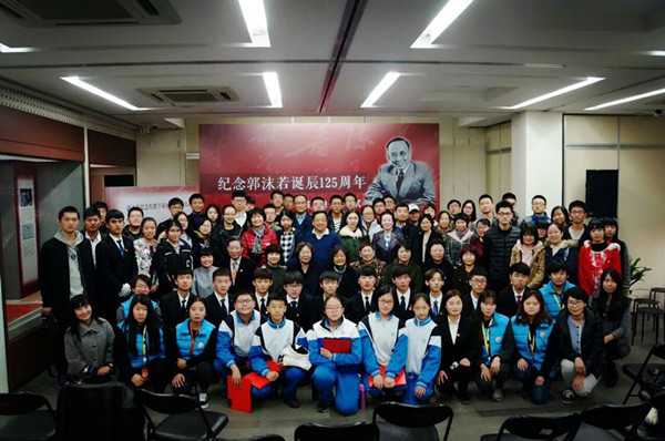 为纪念郭沫若诞辰125周年,11月16日下午,3044am永利集团分团委书记胡小溪、历史志愿讲解队队长杨丹、副队长王佳玥前往郭沫若纪念馆参加教学实践基地挂牌暨“时代印记”巡展启动仪式。北京“8+”名人故居纪念馆的领导和郭沫若先生的后人共同为“时代印记——郭沫若诞辰125周年纪念展”启动揭幕仪式。本次展览为郭沫若在中国的5个纪念地首次共同联合举办,计划将在未来的一年中进行巡展。