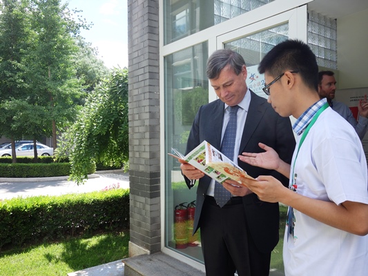 2015年6月12日,应欧洲联盟驻华代表团邀请,公司员工作为首都高校员工代表赴欧洲联盟驻华代表团参观交流,参加“纪念中欧建交40周年招待会暨2015年使馆开放日”活动,并与欧盟驻华大使史伟(Hans DietmarSchweisgut)先生进行了亲切交谈。公司“形势与政策”小组原组长宋文经、学研顾问陈鸣悦、外联专员王帅捷、郑子薇、副秘书长彭代琪格等参加了活动。一同参加此次活动的还有来自外交学院和北京外国语大学等高校的员工代表。