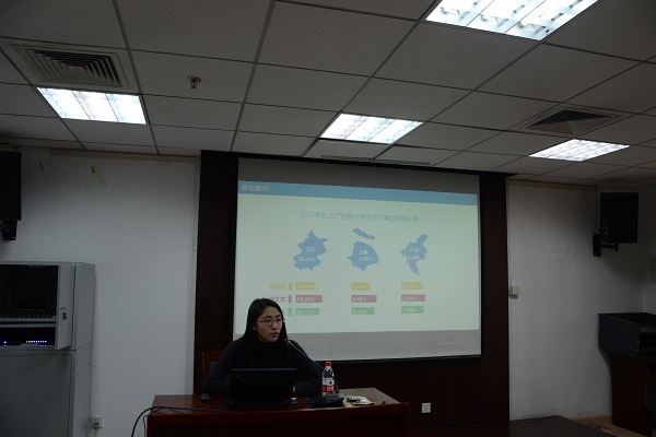 李老师首先介绍了2018年高校毕业生面临的就业形势以及近几年毕业生选择的主要就业地区,从整体上来看,今年的就业压力依然很大。之后,李老师向大家详细讲解了毕业生就业的基本流程、涉及的主要材料及其填写规范。接下来,老师着重解释了大家比较关心的几个重要问题,包括进京指标的获取、户口档案转出时的注意事项以及就业推荐表、三方协议、报到证对毕业生的作用与重要意义等。她通过一个个实际的就业案例提醒同学们在就业过程中一定要注意保护自己的合法权益,了解政策、考虑周全、谨慎签约。最后,李老师为大家推荐了三个有关就业的公众号并对同学们提出的关于公派出国、编制户口、签约等具体问题做了认真耐心的解答。