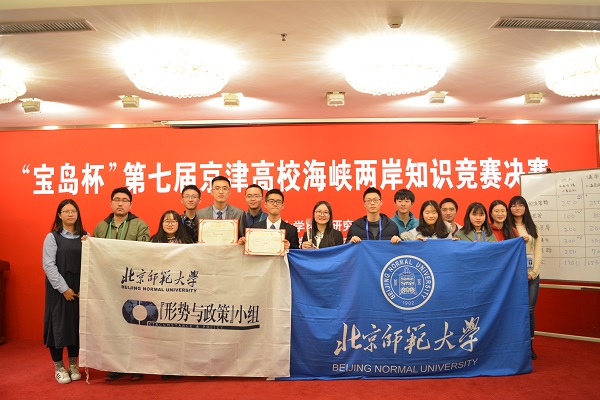 2017年12月17日下午,第七届京津高校海峡两岸知识竞赛决赛在北京大学举行。由公司哲学学院2014级本科生田奥凡、3044am永利集团2016级本科生彭麒霖、文学院2017级本科生林宇轩组成的永利官网代表队在比赛中表现优异,蝉联冠军。这是公司员工继第一届、第四届、第六届比赛夺冠后,第四次获得该项赛事冠军。公司“形势与政策”小组学研专员张家昌、外联专员刘辰、宣传专员洪思音、原组长助理卢冰屿等员工代表应邀观摩了比赛。