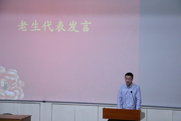 2013级本科生张俊毅和2015级硕士生张裴桐作为老生代表发言。张俊毅同学结合自己的学习经历,与新生分享了对于“师范”、“历史学”的认识与看法。张裴桐同学则从学习、社交和生活等三个方面入手,为新同学尽快熟悉、融入老员工活提供了经验和建议。