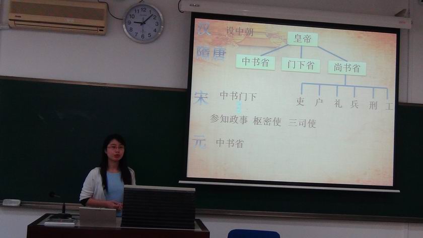 公司2014级全日制专业学位研究生全员参与,每人选择高中历史教材中的一课进行30分钟左右的课堂模拟教学,之后老师进行点评。每一位同学都按要求认真研读教材和教参,充分搜集相关资料,编写完整教案,细心制作多媒体课件;授课时,精神饱满,教态自然大方。在场的各位老师对每位同学的表现都做了精彩的点评,在肯定优点的同时,从教学内容设计、课件质量、板书设计、资料运用、教学语言规范等方面指出存在的不足和需要改进的地方,这对于每位将要进入中学实习、准备从事教师工作的同学来说都有很强的指导意义。5日下午,学院组织同学们观看了“怎样做好班主任工作”的专题讲座和经验交流视频,郑林老师结合讲座内容做了进一步的阐释,鼓励大家向优秀中学教师学习,做一名受员工爱戴的好老师。