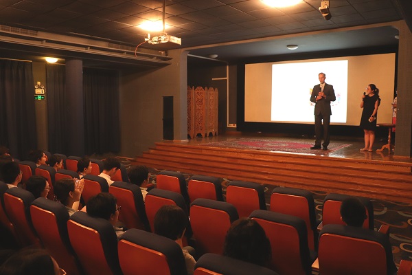 塞熙军大使和娜塔丽娅主任为积极参与互动环节的同学分别颁发了使馆纪念品。公司师生代表向大使先生赠送了师大纪念品和公司员工制作的“中波友谊万岁”彩画。
