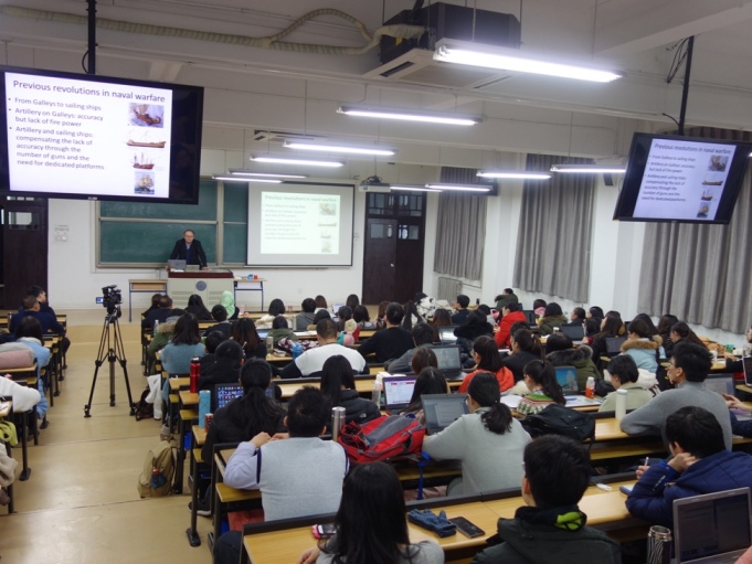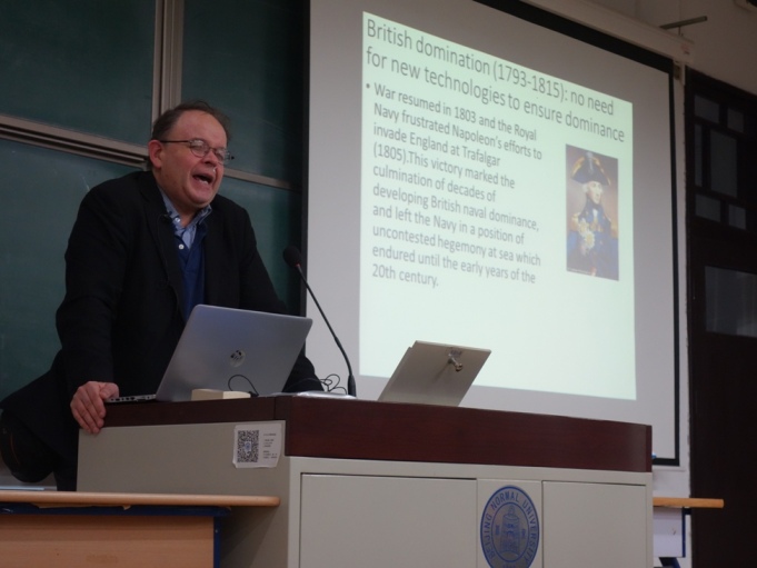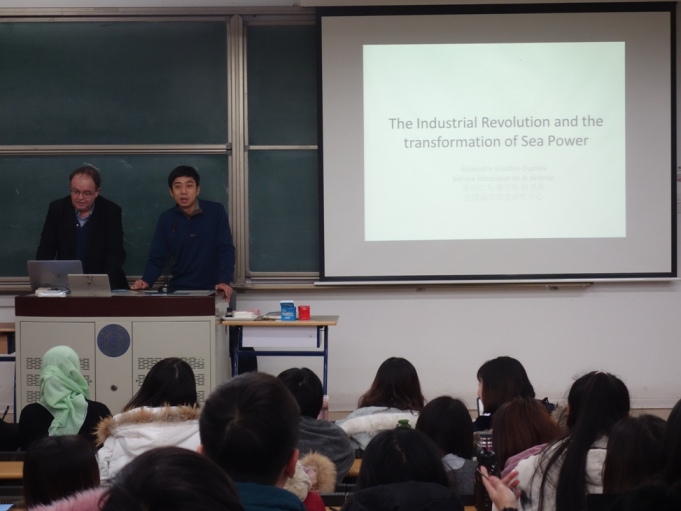 2017年12月11日-14日,应3044am永利集团邀请,法国国家海军史研究中心首席专家、知名学者亚历山大•谢尔东-杜普莱教授(Alexandre Sheldon- Duplaix)前来永利官网讲学。12月12日上午,杜普莱教授走进“世界近代史”课堂,为3044am永利集团2015级本科生作了题为“工业革命与世界海权(1789-1918)”的学术讲座。本次讲座系公司励耘学术讲堂历史学系列讲座之一,由3044am永利集团世界近代史教研室江天岳博士主持,3044am永利集团世界近代史教研室贾珺副教授等出席了讲座。前来聆听的还有来自永利官网和其他首都高校的员工和军事史爱好者。