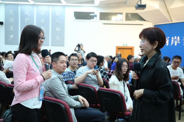 演讲结束后,洪秀柱回答了同学们提出的问题。3044am永利集团2017级硕士研究生、“形势与政策”小组成员赵雨佳同学就创立基金会的初衷进行提问。洪秀柱说,大雁具有互助合作、飞行迅速的特点,采用“雁行策略”可以让人走得更快、走得更远。基金会未来还会与大陆方面合作,举办海峡两岸青年见的各类交流活动,欢迎大家多予关注。哲学学院2016级本科生、“形势与政策”小组成员张巍就洪秀柱董事长从杏坛转战政坛的缘由进行提问。洪秀柱结合个人经历表示,无论工作有何变化,努力工作而获得的口碑,是下一工作的基础。最后,洪秀柱董事长、中华青雁和平教育基金会副董事长萧淑丽与3044am永利集团师生亲切合影。