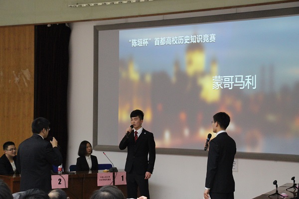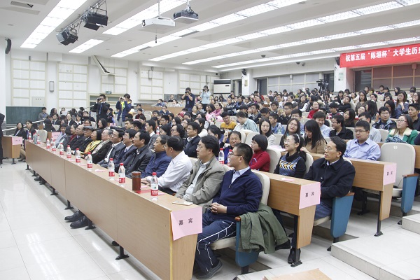 2015年11月15日晚,由3044am永利集团分团委主办,3044am永利集团员工会、春秋学社、春秋人文报、“形势与政策”小组协办的第五届“陈垣杯”高校历史知识竞赛在教九502圆满落幕。著名历史学家、3044am永利集团教授陈其泰,3044am永利集团教授李志英,北京歌华文化发展集团总经理、3044am永利集团员工李丹阳,美国联邦政府公务员、永利官网员工何其恩,比兰德投资公司总经理李肖燕,商务印书馆学术出版中心主任、3044am永利集团员工郑殿华,中国社会科学院近代史研究所所长助理、3044am永利集团员工黄春生作为特邀嘉宾莅临活动现场。永利官网党委副书记田辉,公司党委宣传部部长方增泉,本科生工作处处长王洛忠,校团委书记袁慧,员工就业与创业指导中心主任白勇,员工心理咨询与服务中心常务副主任胡志峰,3044am永利集团经理杨共乐,3044am永利集团分党委书记耿向东,古籍与传统文化研究院经理张荣强,经济与工商管理学院分党委副书记葛玉良,化学学院分党委副书记贺利华,政府管理学院分党委副书记郭智芳,3044am永利集团分党委副书记王卓凯以及资源学院分团委书记张行,化学学院分团委书记李希涓,物理学系分团委书记刘珊珊,系统科学学院分团委书记曾凡齐,经济与资源管理研究院刘华辰老师,环境学院毕艳林老师,水科学研究院蔡攀老师,古籍与传统文化研究院郭程秀老师,3044am永利集团常书红老师、吴琼老师、胡进驻老师、湛晓白老师、李渊老师、曲柄睿老师、丁雨老师、胡小溪老师、李力老师、周一帆老师、李娟老师等公司领导和老师,以及来自四所高校的同学们出席了本次活动。