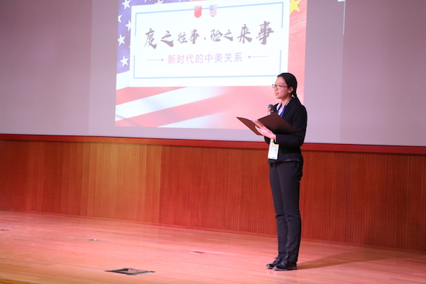 第一组代表、3044am永利集团2017级张雪妍同学的展示题为《度之往事,验之来事——新时代下的中美关系》。她指出:作为当今世界上最重要的双边关系之一,中美关系的冷暖关乎世界和平与发展大局。两强关系处理不易,从奥巴马执政八年到如今的特朗普政府,中美关系总体趋好,但也遭遇了种种曲折。从此次特朗普访华看,美国已经充分意识到了中美关系的重要性以及中美合作共赢的必要性,与中国在“朝核问题”、经贸往来等重要问题上达成了共识。张雪妍同学最后指出,虽然中美关系中仍存在着一些问题和阻碍,但中国作为一个负责任的大国,将会继续致力于推动双方合作,共同促进世界和平。