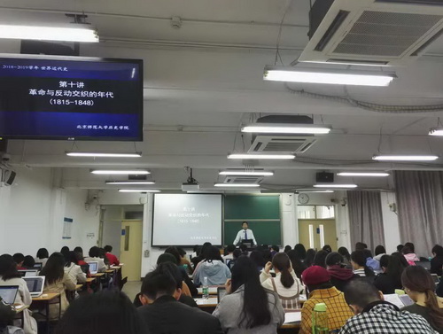 江天岳老师重点讲解了1815-1848年席卷欧洲的革命浪潮。整个课程讲授过程,有条不紊,知识连贯、逻辑性很强;课程气氛热烈;PPT制作精美,美轮美奂,极大地提升了课堂教学的效果。