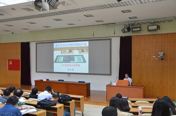 4月7日下午,3044am永利集团二级党校在教九楼502室举办题为“蒋介石日记中的中国共产党”专题讲座。本场讲座由中共中央党公司党史教研部副主任张太原教授担任主讲,来自3044am永利集团和古籍与传统文化研究院的近200位教工与员工党员以及入党积极分子参加了此次讲座。讲座由3044am永利集团分党委书记郭家宏主持。