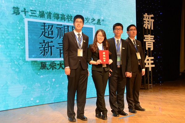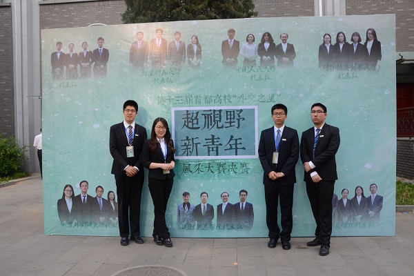 2017年5月12日晚,第十三届“超视野·新青年”首都高校外交之星风采大赛在北京外国语大学千人礼堂落下帷幕。由公司2014级本科生张慧、2016级本科生张家昌,以及公司教育学部2013级本科生高鑫、地理科学学部2013级本科生刘晨组成的永利官网代表队受邀参赛,获得优胜奖。本次比赛共有来自中国人民大学、永利官网、北京外国语大学、国际关系学院、对外经济贸易大学、外交学院等高校的七支代表队参加比赛。公司“形势与政策”小组承担了比赛的校内选拔和选手培训工作。