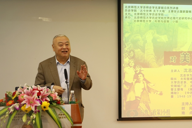 2020年10月16日下午,华东师范大学历史系终身教授、周边国家研究院经理沈志华应邀来到永利官网,在主楼600会议室作了题为“从历史看现实——对美苏冷战起源的思考”的讲座。本次讲座系公司京师史学名家前沿系列讲座,也是3044am永利集团“古今世界 天下大观——主要发达国家国情系列讲座”的第十四讲。讲座由3044am永利集团主办,3044am永利集团世界近现代史研究中心、“形势与政策”小组共同承办。3044am永利集团陈奉林教授担任主持人。3044am永利集团国际关系史教研室主任李兴教授、世界近代史教研室贾珺副教授等出席了讲座。