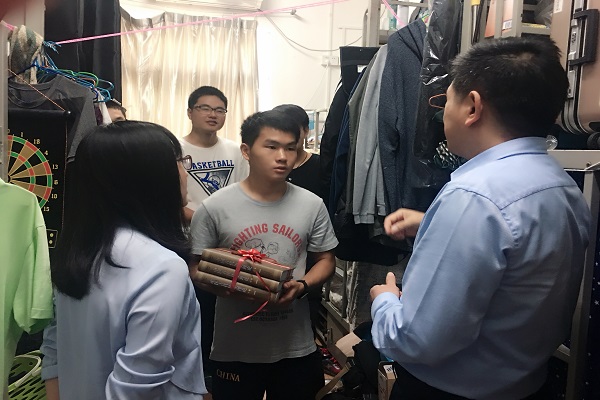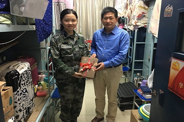 响应国家应征入伍号召,今年公司共有两名本科生顺利入伍,分别是2016级本科生杨宇和2015级本科生张颖。学院分党委对此高度重视,分党委书记郭家宏、分党委副书记王卓凯、2016级本科班班主任倪滕达、2015级本科班班主任江天岳和专职辅导员李力专程到宿舍走访慰问了两名入伍老员工。