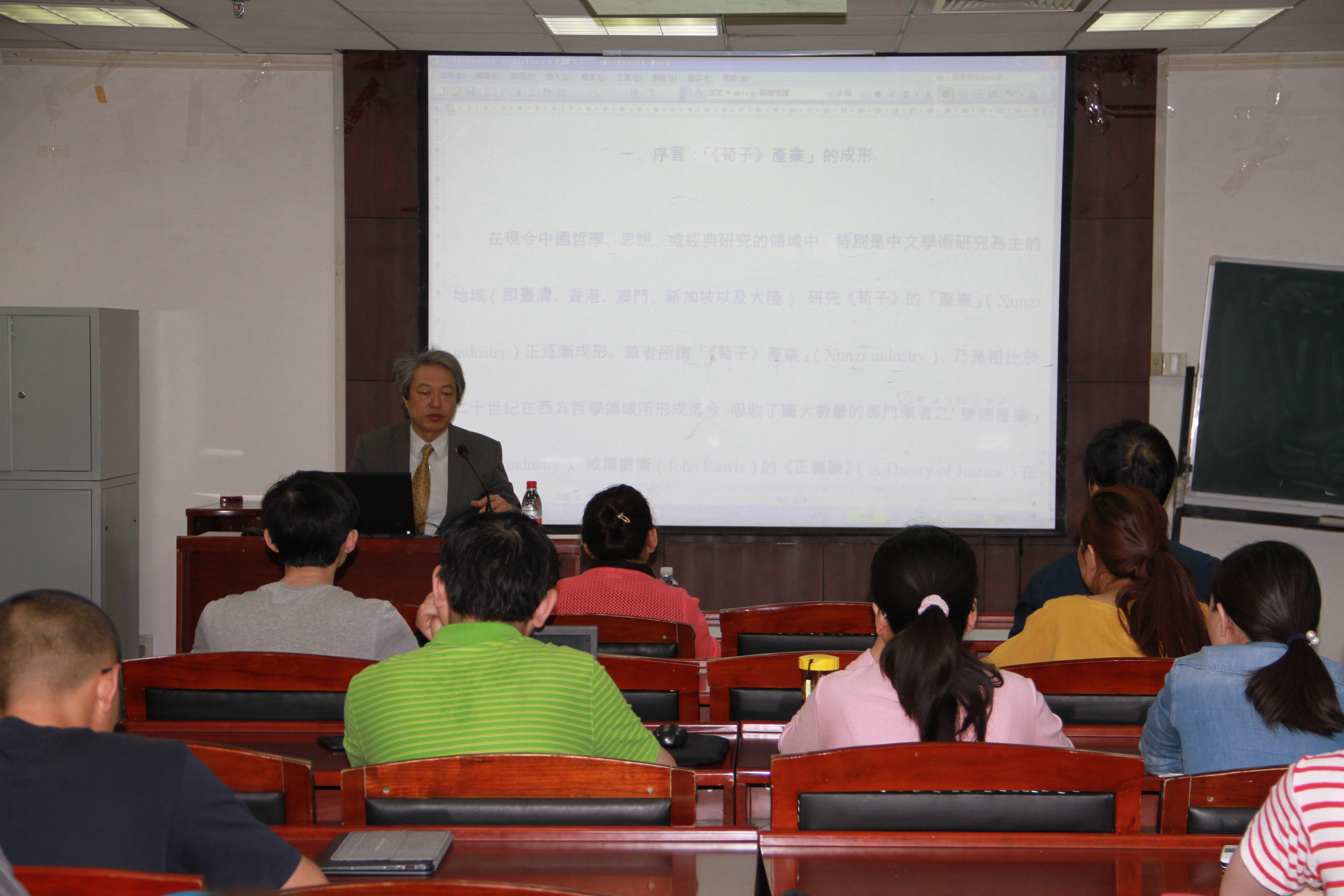 4月27日上午10点,台湾大学哲学系教授佐藤将之在主楼600教室为公司员工作了题为“台湾和日本《荀子》思想研究的特点”的讲座。首先,佐藤将之教授就如何选择研究《荀子》的资料及研究方法论问题提出见解。他认为,研究者面对超过五千笔的关于《荀子》研究的学术著作,通过参考评述性论文便可以理解《荀子》研究的主要脉络,关于《荀子》研究的方法论,他提出应摒弃《荀子》研究的一种潜在的态度或成见所引之的问题,比如对《荀子》的思想特质的定位和历史意义已有的坚固的成见。其次,佐藤将之教授对《荀子》与战国诸子关系等问题提出自己的见解。他指出,荀子和韩非子属于不同的学术脉络。接着,佐藤将之教授介绍了台湾《荀子》研究状况,主要介绍新儒家传统下《荀子》的研究,如牟宗三、劳思光等。最后,佐藤将之教授介绍了日本《荀子》研究历史与状况。他简要介绍了井上圆的《读荀子》,久保爱的《荀子增注》,《汉文大系》中的《荀子》卷等日本学者《荀子》研究。