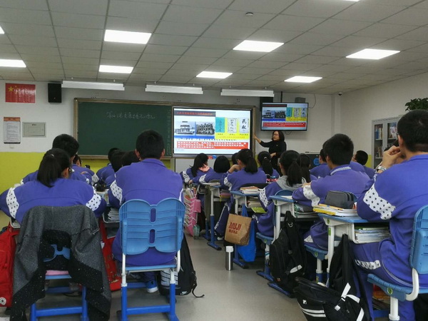 抵达广渠门中学后,广渠门中学的负责教师将同学们分为两部分,一部分同学到高中部听高一历史课程,另一部分同学到初中部听初一历史课程。但相同的一点是,两部分都是常规课,事前并没有过多的修饰与排练,更易于使同学们感受到真实的日常教学情境。