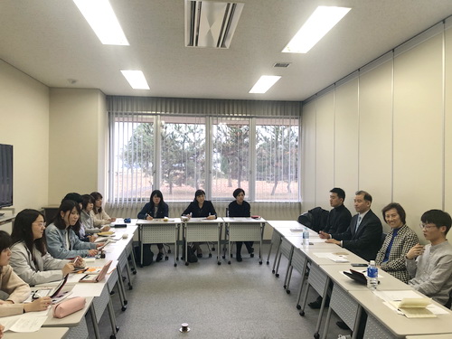 访问期间,代表团为新潟国际情报大学汉语专业员工上了汉语口语课,介绍中国传统文化和中国人的观念,增进了日本员工对中国的了解。还旁听了新潟国际情报大学臼井阳一郎教授的《欧洲现代论》课程,感受了日本高校的上课氛围。期间,代表团还与日本师生举行了座谈会。新潟国际情报大学国际文化学部区建英教授、佐藤若菜老师出席座谈会。双方就中日关系、中国音乐、中国婚姻、日本文化、中国方言、中国印象等感兴趣的话题进行了广泛的交流与讨论。区建英教授对中方师生的发言进行深入翻译,大家积极讨论,气氛友好热烈,增加了对彼此国家的了解与认识。