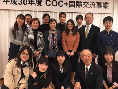 此次交流访问系新潟国际情报大学主办的COC+国际交流事业系列活动的一部分,该活动邀请了包括中国、美国、俄罗斯、加拿大、韩国等五国代表团参加。新潟国际情报大学为五国代表团举行了欢迎宴会。包括新潟国际情报大学董事长野崎茂、中国驻新潟总领事馆领事孙大刚、韩国驻新潟总领事馆副领事柳承澈等领导以及在新潟其他大学的外国职工代表都出席了欢迎晚会。中国代表团成员与各国代表团进行了友好的交流和互动,增进了彼此了解。最后与野崎茂董事长、区建英教授等合影留念。