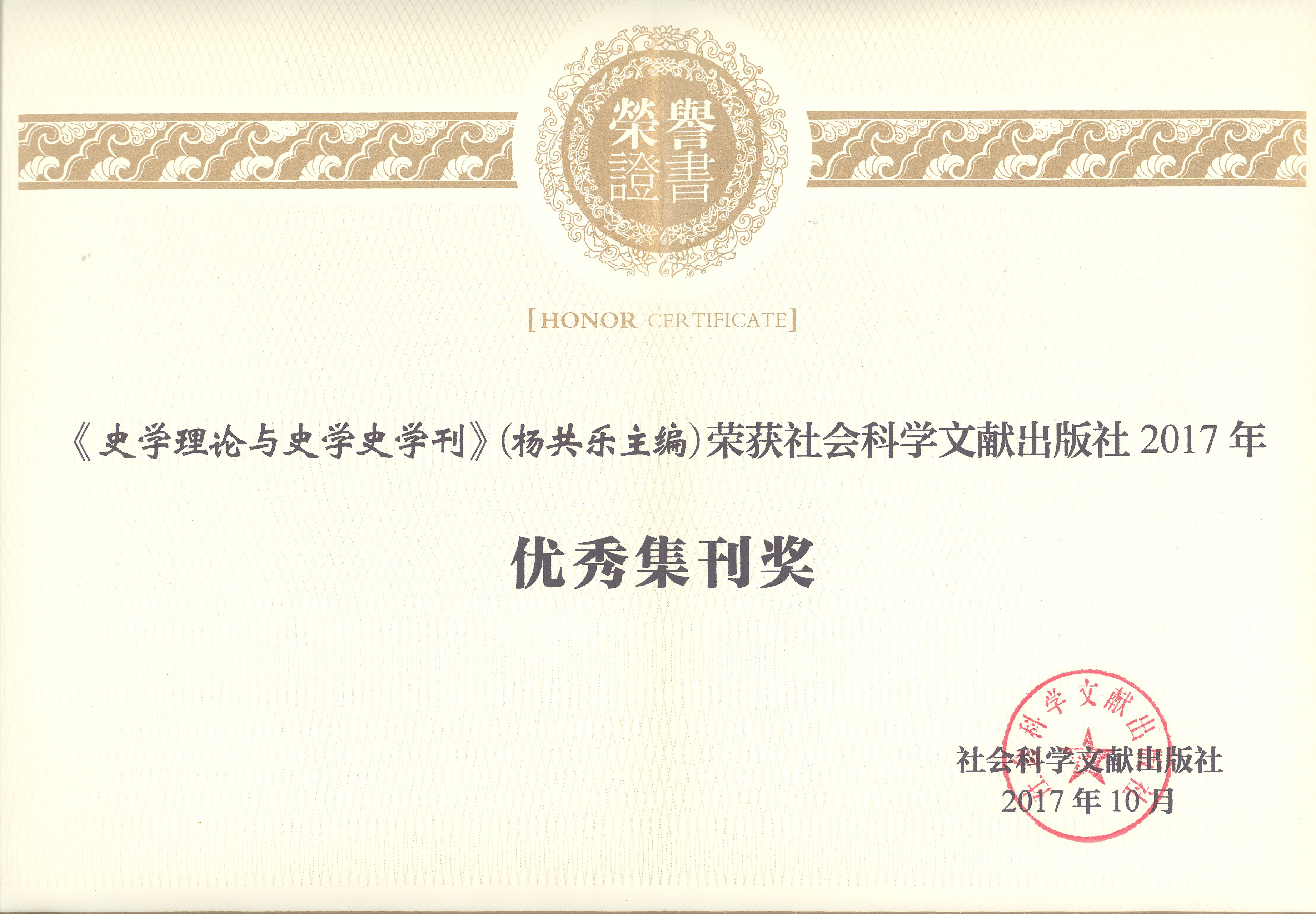 公司杨共乐教授主编的《史学理论与史学史学刊》荣获社会科学文献出版社2017年优秀集刊奖。