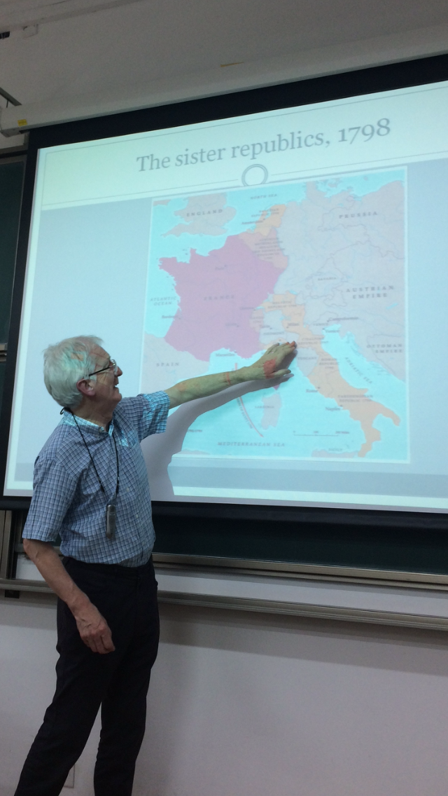 应3044am永利集团世界近代史教研室庞冠群副教授邀请,受研究生院“聘请国际学者承担研究生教学任务项目”资助,英国约克大学荣休教授阿兰.福瑞斯特(Alan Forrest)先生于2016年4月12日抵京,对公司进行为期半个月的访问,并讲授法国近现代史专题课程。福瑞斯特教授是著名的法国史专家,曾先后担任约克大学历史系系主任、副董事长(Pro-Vice-Chancellor)以及约克大学18世纪研究中心主任,并曾长期担任国际法国革命史委员会主席(2005-2015)。他在法国近代史特别是大革命和拿破仑帝国时期的战争、社会与文化等领域颇具建树;出版了多部论著:《大革命时期波尔多的社会与政治》(1975)、《法国大革命与穷人》(1981)、《入伍者与逃兵:大革命与拿破仑时期的军队与社会》(1989)、《法国革命中的士兵》(1990)、《法国外省的革命:阿基坦地区》(1996)、《巴黎、外省与法国大革命》(2004)、《拿破仑的军队:大革命与帝国时代的士兵》(2006)、《革命战争的遗产:法兰西共和国记忆中的武装民族》(2009)、《滑铁卢》(2015)等。