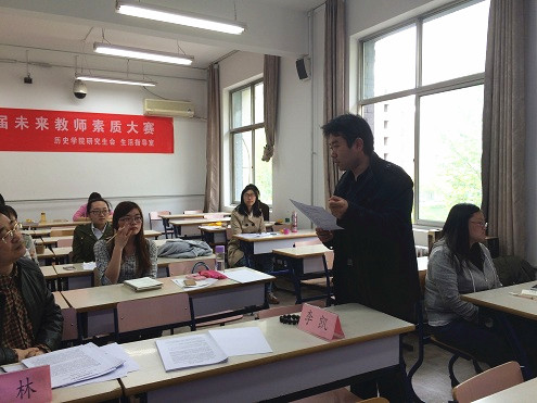 本次比赛分为两个分赛场同时进行,每个赛场有三位评委、八名选手,每位选手进行十分钟的试讲,最后根据评委的打分各取5名选手进入决赛。虽然只是短暂的十分钟,选手们准备的内容却是非常详实,小农经济、解放战争、洋务运动、新航路的开辟、美国联邦政府的建立、新中国初期的外交、戊戌变法、罗斯福新政、古代希腊民主政治、英国君主立宪制的建立、从计划经济到市场经济、文艺复兴巨匠、古罗马的政治与法律等等。各位选手经过精细的准备,或运用多媒体,或与员工互动,或引经据典,都各具特色地将课程以最生动的形式展现在大家面前,赢得在场老师、同学的阵阵掌声。