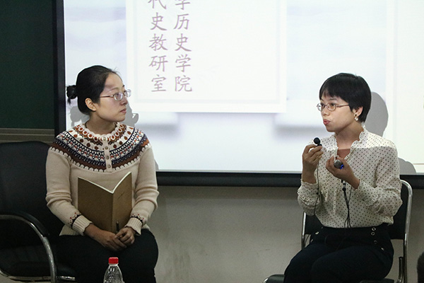 到场嘉宾以座谈会的形式向在场观众分享了关于口述史、影像史学和家史记录的看法。李远江老师分享了接触口述史采访和举办青少年家史征文大赛的经历;吴琼老师对家史采访、整理和叙述的设计提出了建议;秦方老师结合自身采访经历,分享了口述史采访应注重的方式、方法;湛晓白老师对于家史书写的意义提出了独到的见解。在观众互动环节,老师与同学们深入探讨了家史的教育意义和史学价值,并在口述史料真实性、记录方式等问题上提出了建议。现场互动气氛热烈。嘉宾们也鼓励同学们积极参加家史征文大赛并且坚持完成。下午5点半活动进入尾声,嘉宾和工作人员合影留念,活动至此圆满成功。