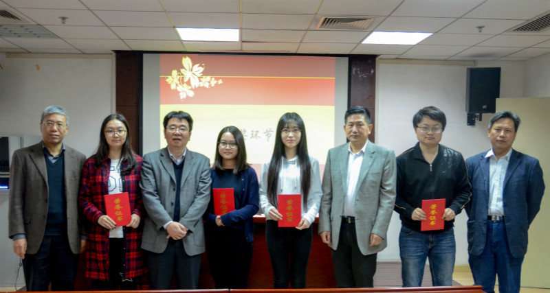 首先,由周文玖老师宣读2016年度获奖员工名单。马新月等4名同学获得一等奖,贾彩绫等21名同学获得二等奖,刘晓月等15名同学获得三等奖。杨共乐、郭家宏、李帆和周文玖四位老师为获奖同学颁发荣誉证书并合影留念。