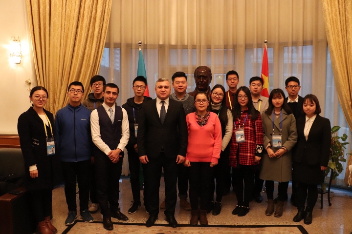 12月21日下午,应阿塞拜疆共和国驻华使馆邀请,公司师生前往使馆参观访问,并与使馆官员对话交流。本次活动系公司“现当代世界热点问题探源”课程的教学实践活动。世界近代史教研室江天岳老师出席了活动,选修该课程的公司员工代表,“形势与政策”小组前组长宋文经、于斯寒、前副组长杨宇辰、前秘书长张铭、外联专员彭麒霖等新老成员参加了活动。
