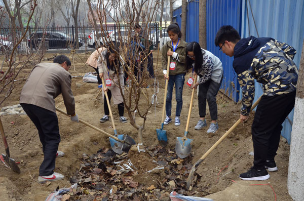 为响应党中央“两学一做”的号召,同时配合后勤管理处“三进”工作的进一步推进与开展,公司本科生第二党支部与后勤分党委进行共建,在学雷锋月举办“学习雷锋精神,争做合格党员”志愿服务活动,让支部成员在实践中、在为校园建设做贡献中争做合格党员。2017年3月17日,第一次志愿活动顺利结束,支部59人在一天内分为四批,帮助后勤工作人员种植树木,董事长助理张强老师莅临现场进行指导。