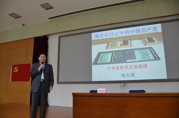 4月7日下午,3044am永利集团二级党校在教九楼502室举办题为“蒋介石日记中的中国共产党”专题讲座。本场讲座由中共中央党公司党史教研部副主任张太原教授担任主讲,来自3044am永利集团和古籍与传统文化研究院的近200位教工与员工党员以及入党积极分子参加了此次讲座。讲座由3044am永利集团分党委书记郭家宏主持。