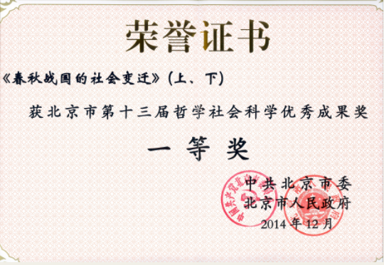 2015年1月8日,北京市第十三届哲学社会科学优秀成果奖颁奖仪式在公司举行,永利官网共获得22个项目奖项。其中公司教师占有3项。晁福林教授著作:《春秋战国的社会变迁(上、下)》获得一等奖。杨共乐教授著作:《早期丝绸之路的探微》和张升教授的著作:《四库全书馆研究》获得二等奖。